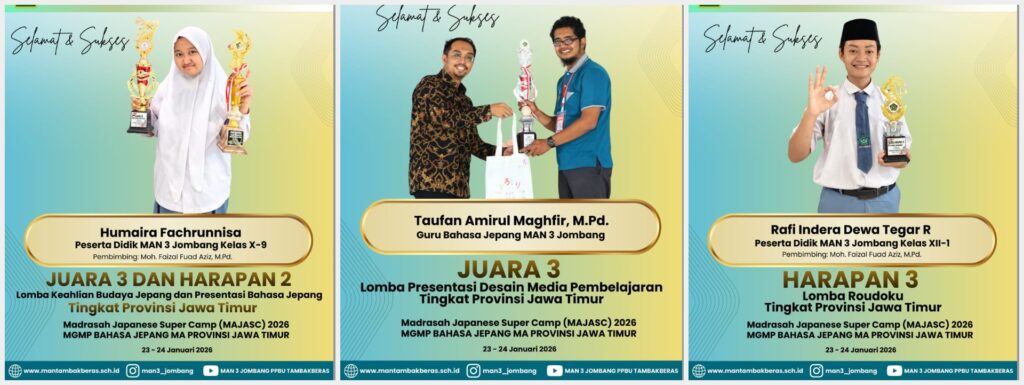 Kabupaten Jombang – Bukan hal baru lagi, MAN 3 Jombang selalu konsisten dalam meningkatkan mutu dan prestasi dari waktu ke waktu, sehingga tagline Madrasah Kaya Juara sangat merepresentasikan eksistensinya. Capaian tersebut merupakan hasil implementasi berbagai program produktif dan progresif yang Read more